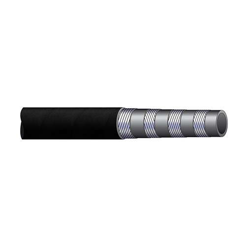 “Tubazione in gomma resistente agli olii rinforzata con 4 spirali metalliche ad altissima resistenza e copertura in gomma sintetica resistente ad abrasione,olii e agenti atmosferici.