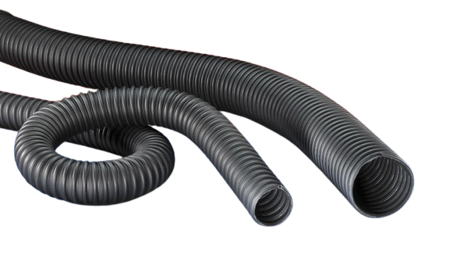 Tubo flessibile nero con parete in tessuto rivestito in EPDM/PP ,spirale speciale di sostegno del profilo in plastica e fascia rinforzata in tessuto. Una tubazione con grande flessibilità e comprimibilità,resistenza allo schiacciamento, buona resistenza chimica e a prova di vibrazione.