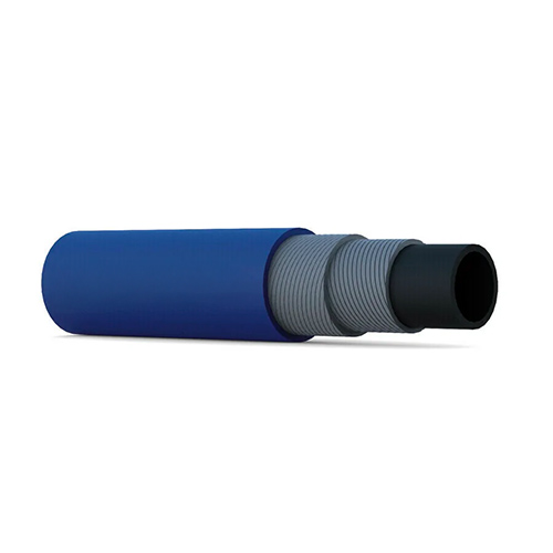 Tubo nero, liscio in gomma SBR con rinforzo in tessuti ad alta tenacità , copertura blu, liscia in gomma SBR/EPDM, resistente all’abrasione ed agli agenti atmosferici.