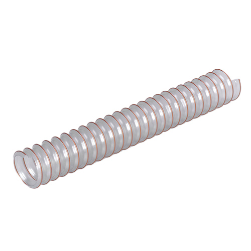 Tubo trasparente in TPU a base estere rinforzato con spirale in acciaio ricoperta in TPU color rame, per assicurare la massima adesione con la parete. Spessore di parete da 0,4 mm a 0,75 mm. Altissima flessibilità e maneggevolezza che, unite a grande leggerezza e comprimibilità (circa 5:1), rendono il tubo ideale per chi cerca facilità d’uso, stoccaggio e trasporto. Resistente ad abrasione, olii minerali, raggi UV, invecchiamento e ozono.
